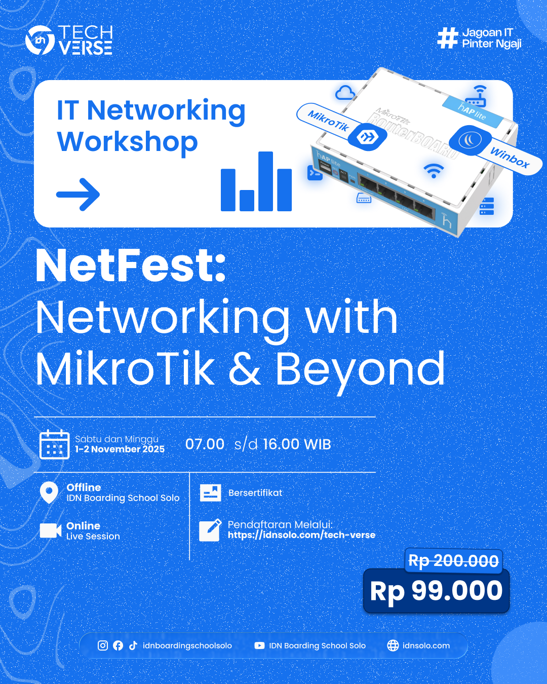 This ad design is crafted to convey complete information, including the date and time of the event, so that the audience can immediately understand the message being conveyed. With a strategic layout, attractive visuals, and a clear information hierarchy, this design enhances the appeal of the promotion and encourages the audience to take immediate action.